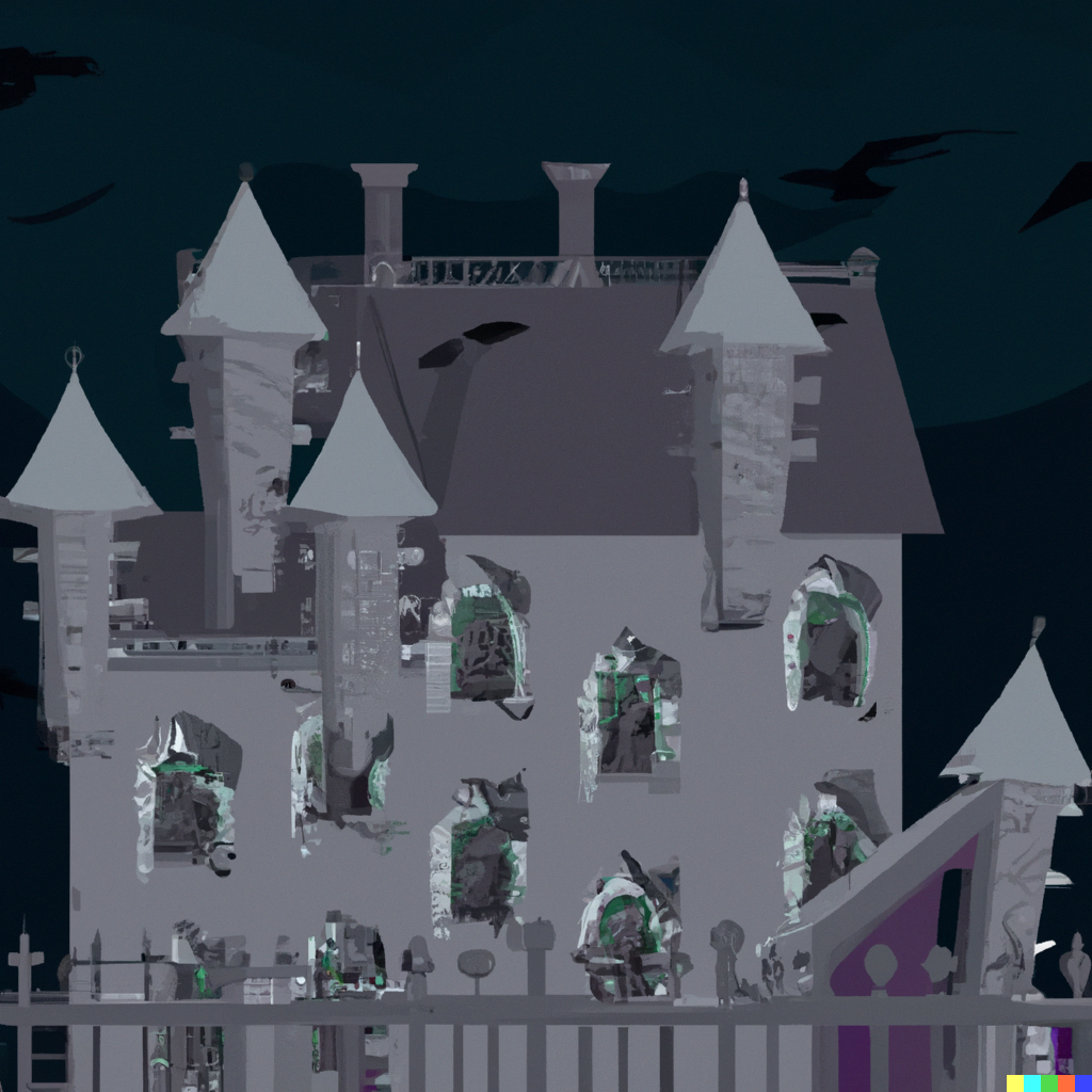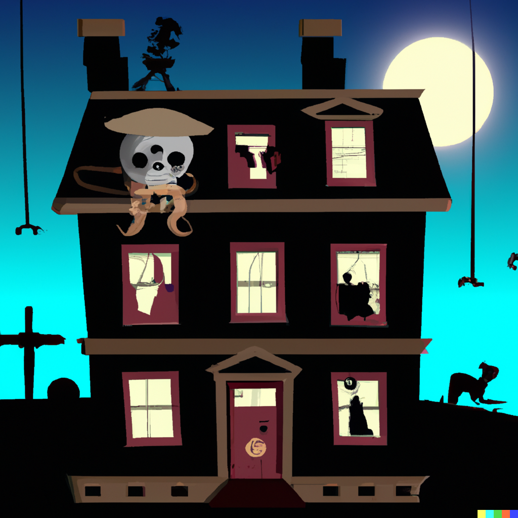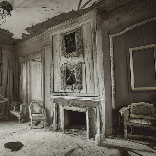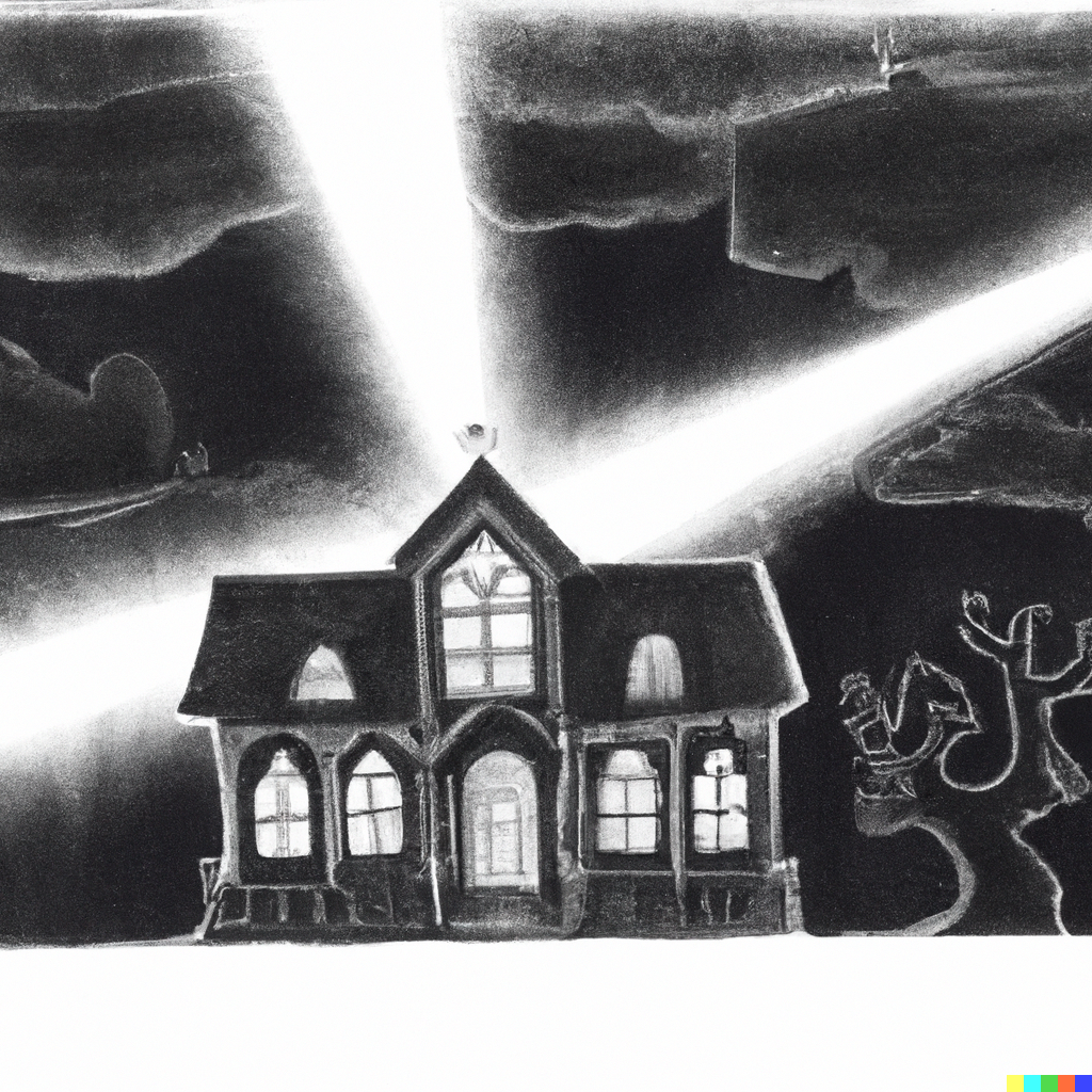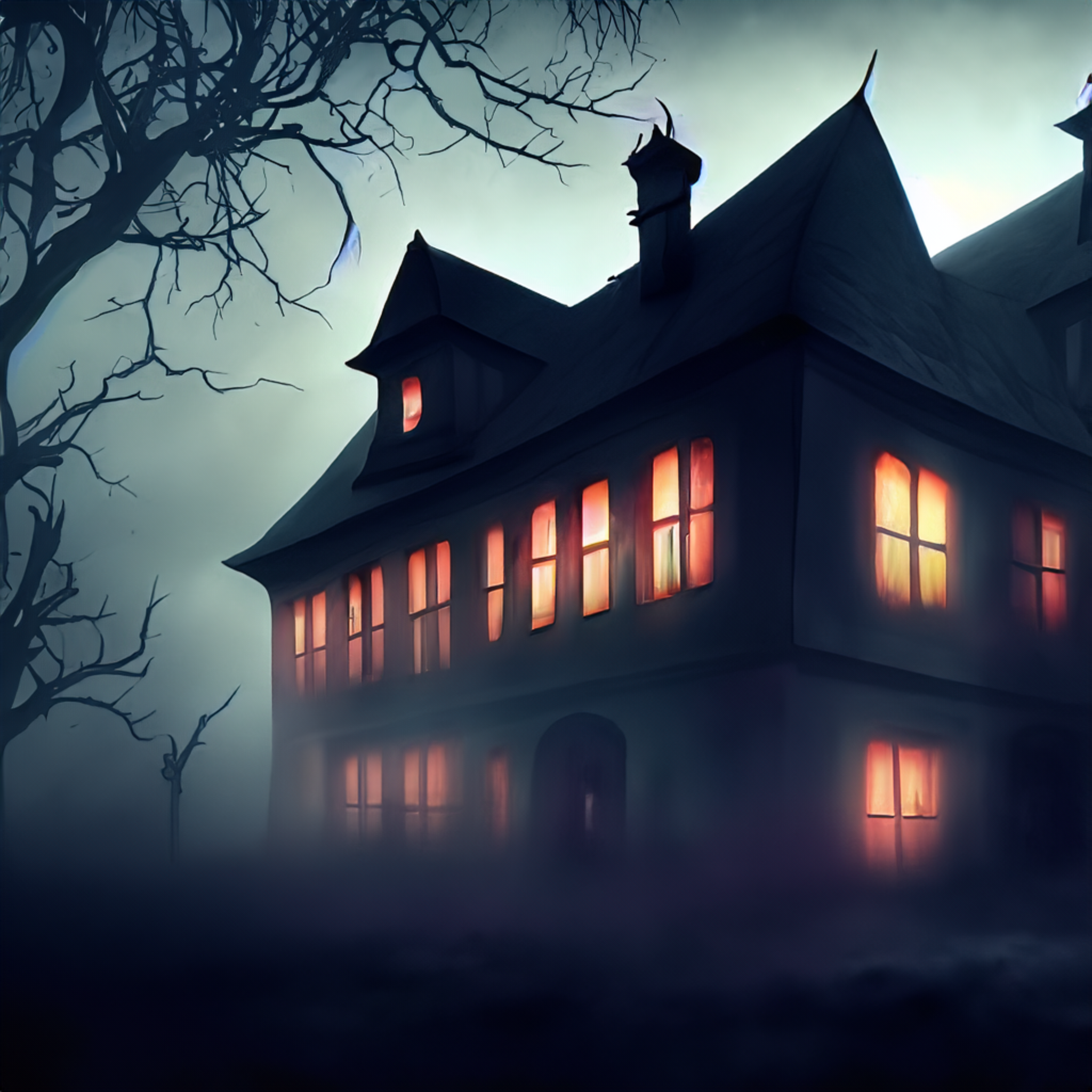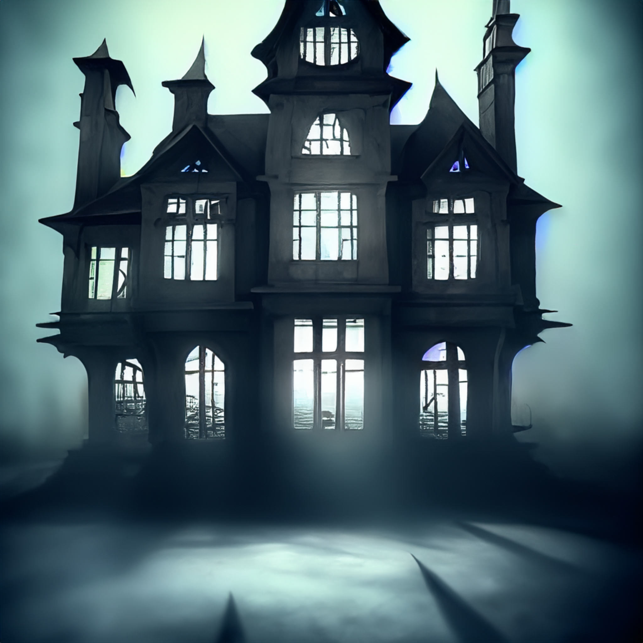 a haunted house with ghostly apparitions, eerie shadows, and mysterious secrets lurking in every corner