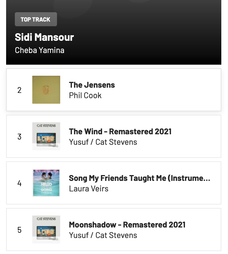 When I traveled to New York City in April, 2022, I had a pretty uniquely New York experience when I went out to lunch. I walked around and stopped by an Egyptian restaurant that made wraps and the song playing there was Sidi Mansour by Cheba Yamina, since then the song has been a pretty popular song for me. The rest of the top songs and the rest don’t really follow the upbeat and dance vibe.