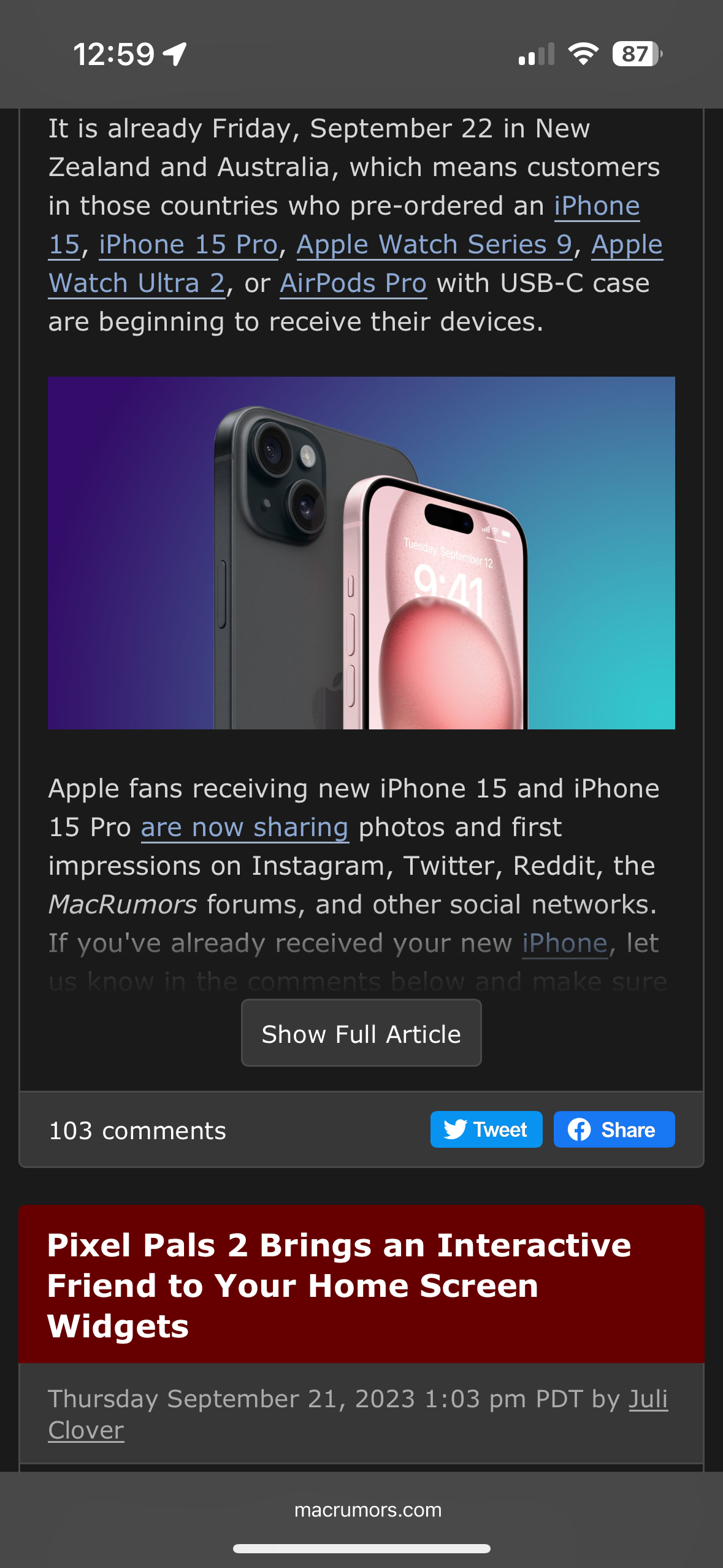 Macrumors website, left is Safari, right is Orion. Same scroll position.