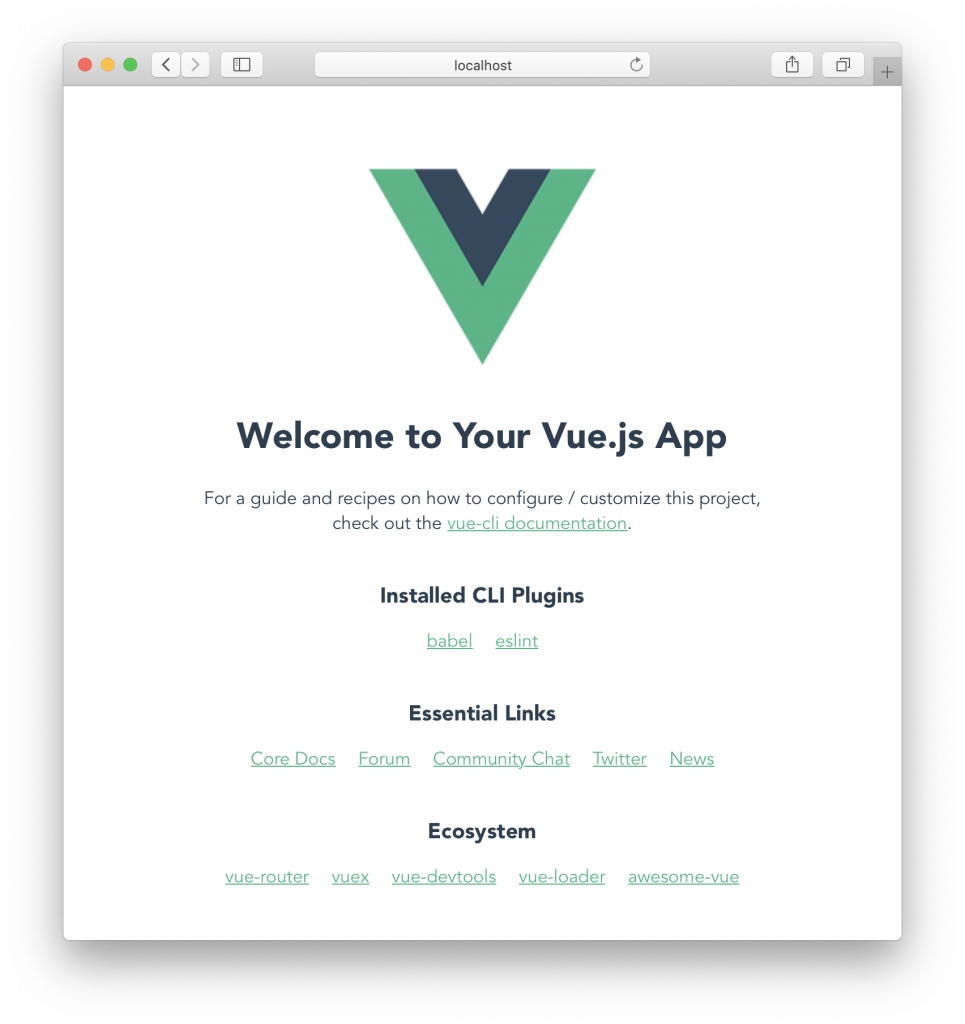 cdinto the directory and then runnpm run serve. If you see the following page, you’re good to go: