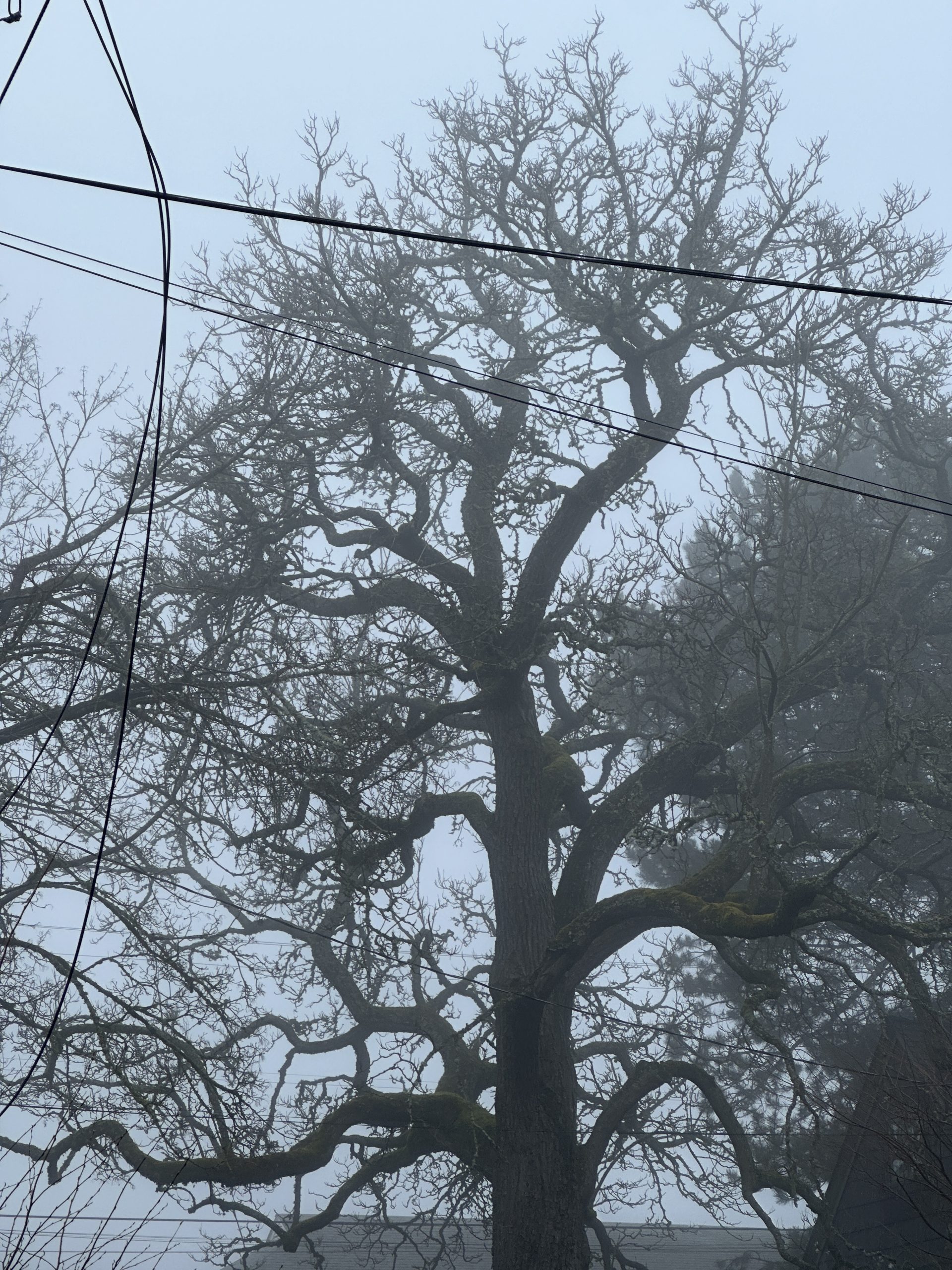 This morning in Portland the fog makes the old trees look haunted
