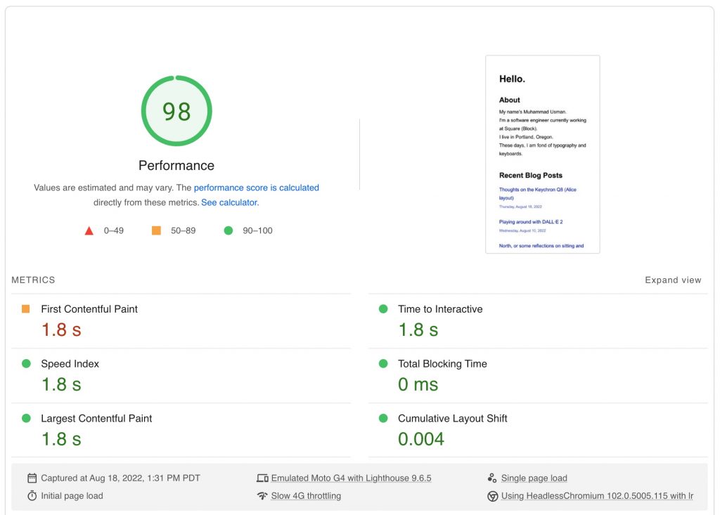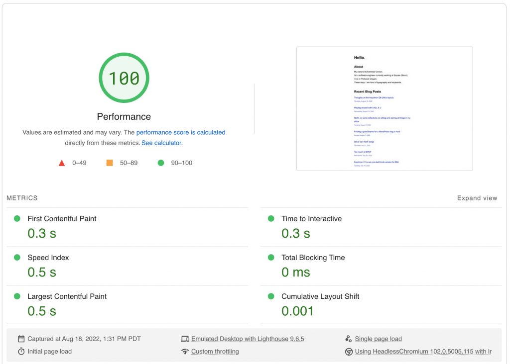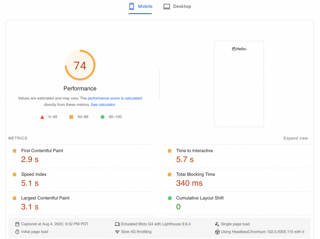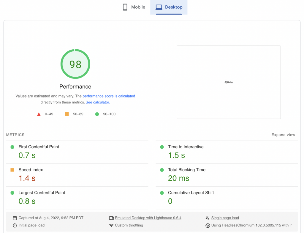 The mobile performance was bad to the point where sometimes on mobile, it wouldn’t even render and just spin. The PageSpeed results were a bit weird at first since I thought it’d be slow in both environments.