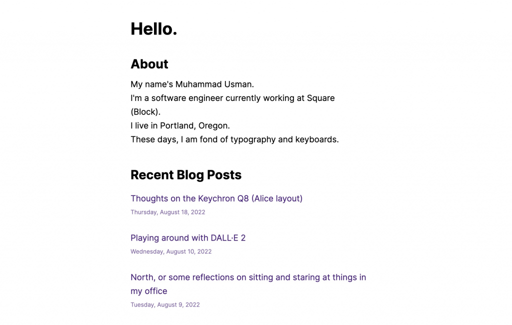 I liked this version long enough to keep it around for almost 4 years. But there was an itch earlier this year to redo my homepage. I felt like my homepage was kinda boring but maybe I was just feeling something else and projected it on my homepage.